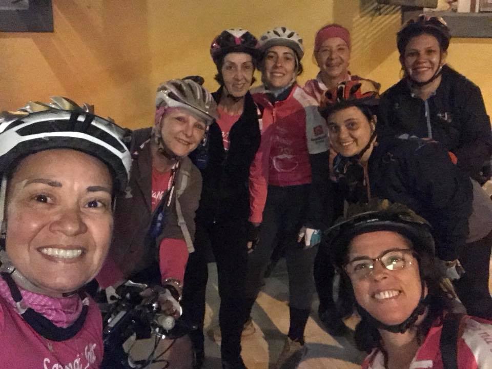 Noite linda mas fria, bom que toda semana vem chegando meninas novas.Ontem Renata e Maelle que nunca tinham pedalado à noite e em grupo mas a receptividade das Saia, ajuda a descontrair e logo mais já entram no papo. Estranhei, cidade, restaurantes tudo vazio até os garçons batendo papo na porta dos estabelecimentos. Será $$$$ pela semana do dia das mães? Valeu meninas até a próxima!!